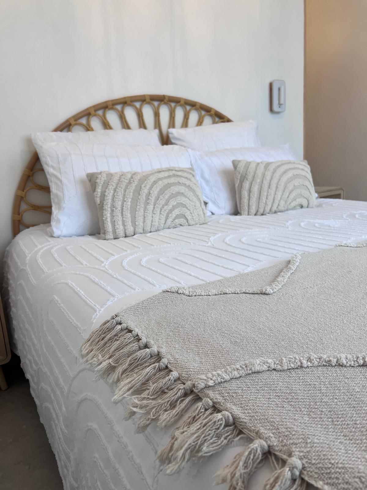 Spacieuse et lumineuse, tournée vers l’est. Sobriété paisible, matières apaisantes, éveil avec le soleil.